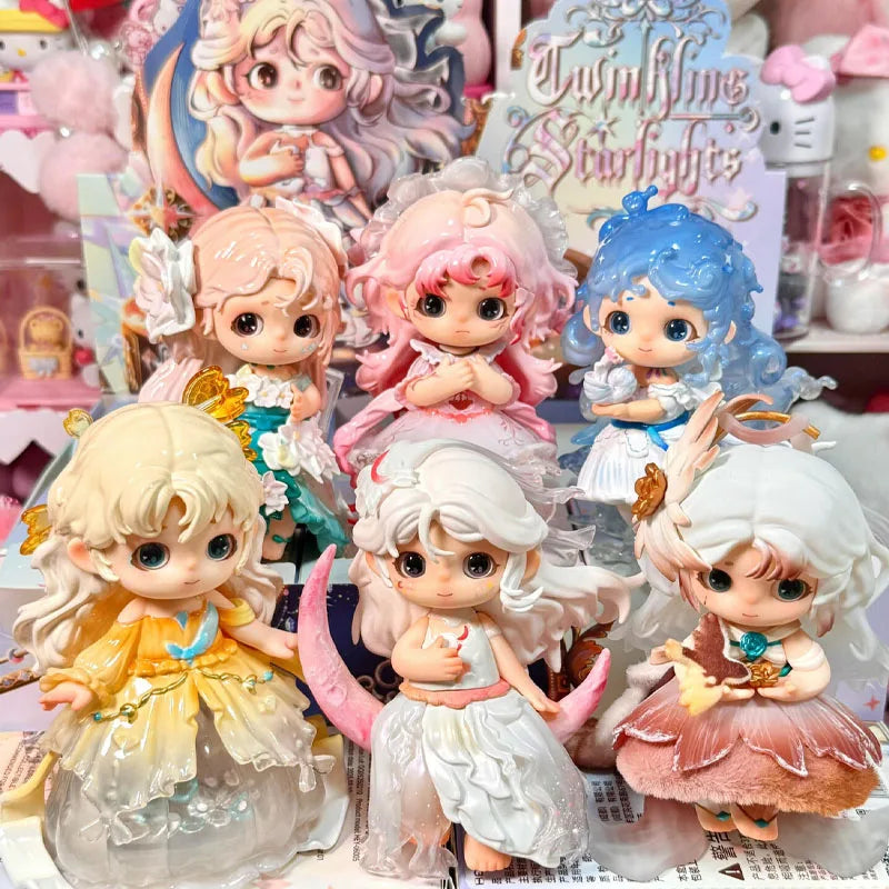 Blind box format with a surprise figure from the Twinkling Star Lights Series, each featuring unique, starry-themed designs.