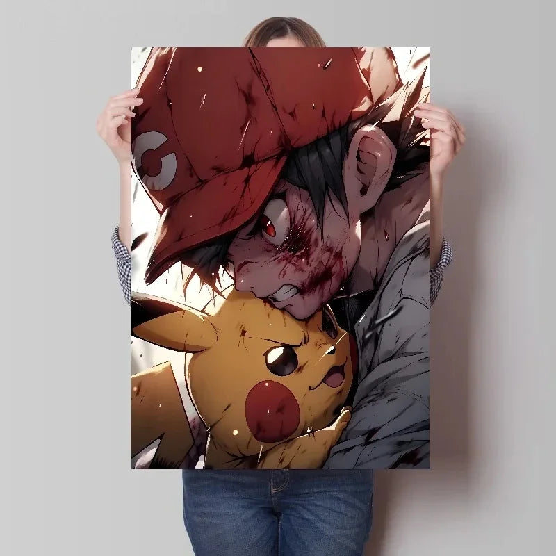 Bring the electrifying energy of Pikachu into your living room with this stunning Pokémon Fight Pikachu Canvas Poster! Featuring an intense moment of Xiaozhi and Pikachu, this wall art is a perfect addition to any Pokémon fan's home decor.