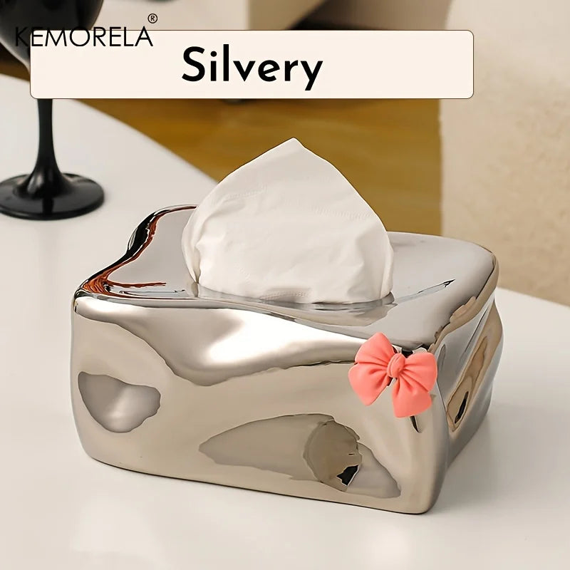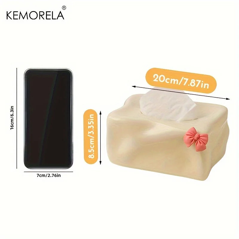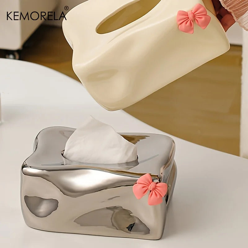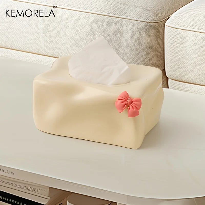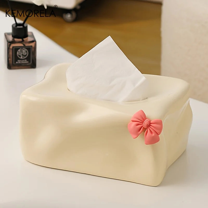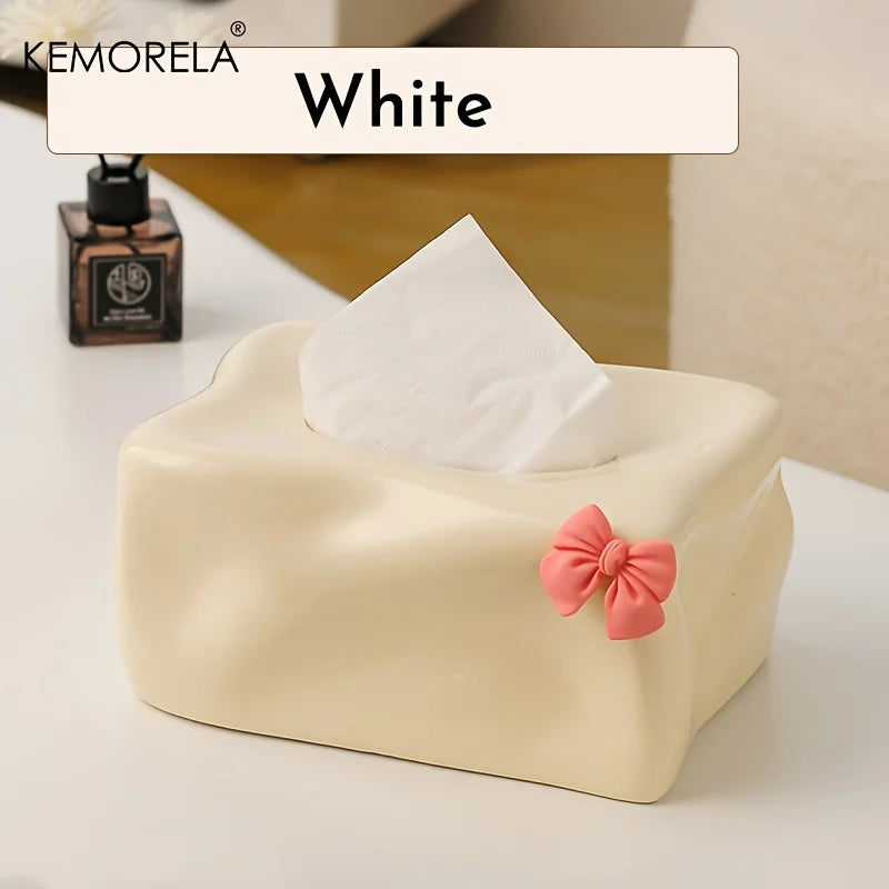 Short Description: Add a touch of charm to your space with this cute bow-shaped ceramic tissue box holder — perfect for your home or kitchen!
