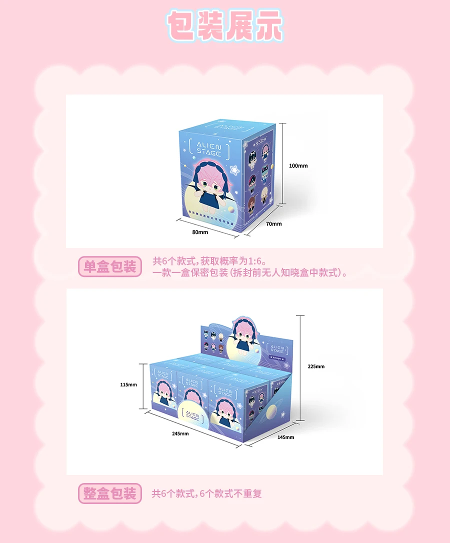 Short Description: Unbox the mystery with the Mini Alien Stage Free Stage Blind Box — a customizable anime figure, perfect as a portable pendant or desktop decoration!