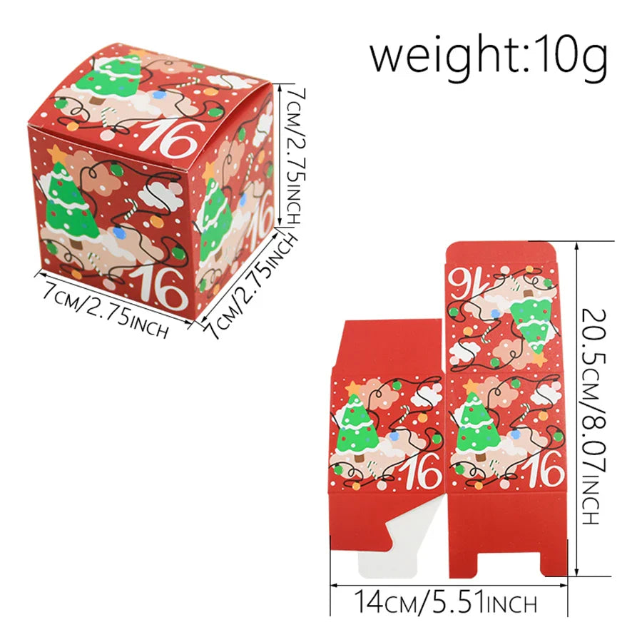 • Includes 24 individual boxes, each with a numbered label for easy countdown